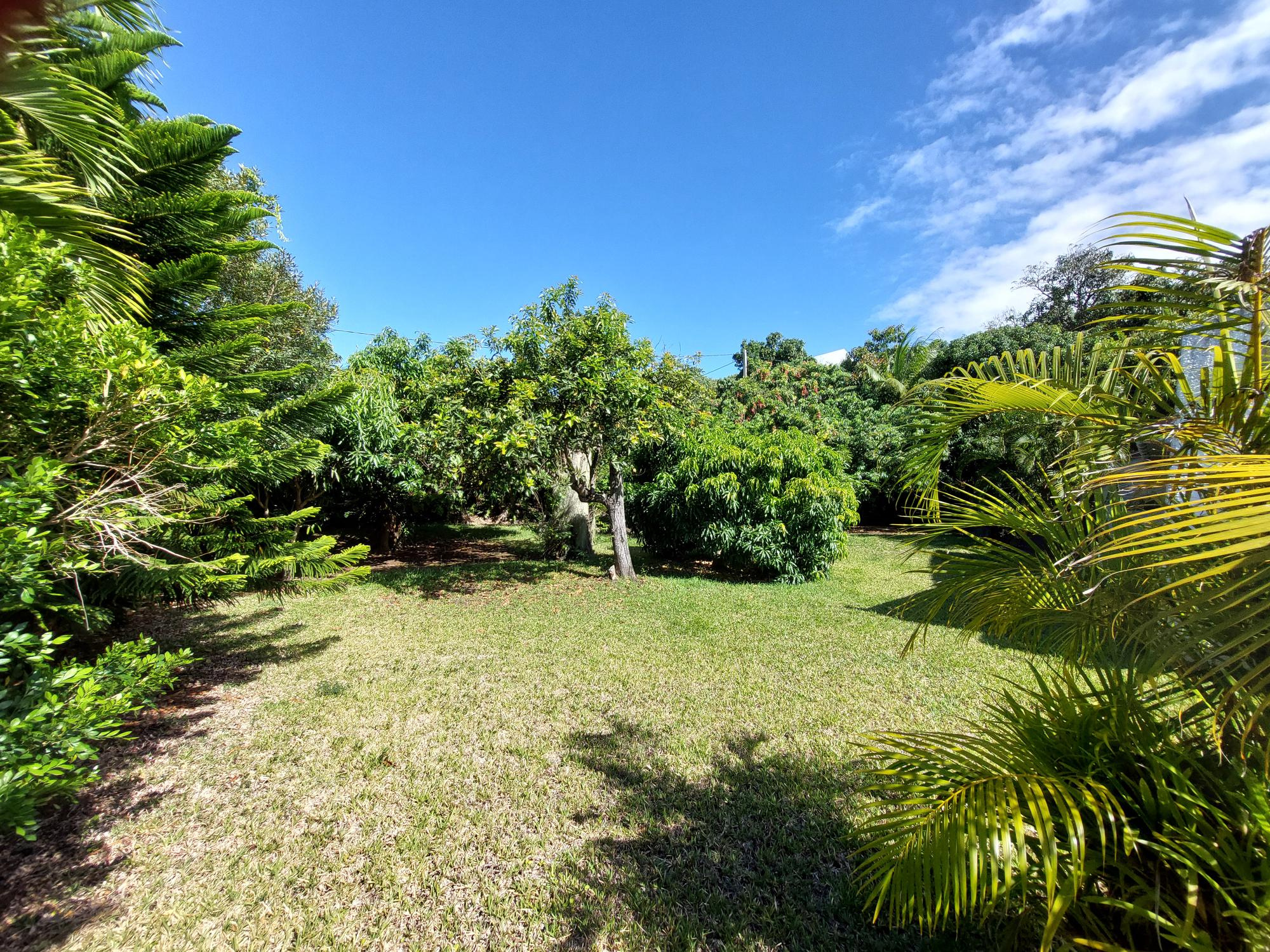 Au rez-de-chaussée : une entrée, une cuisine, un séjour/salle à manger de près de 56 m2 prolongé par une véranda d’environ 42 m2, un bureau, une arrière-cuisine avec varangue de 18 m2 donnant sur un véritable verger, et un WC avec lavabo. Le terrain, majoritairement plat, s’étend sur plus de 1 600 m2 et accueille une dépendance (remise), ainsi que des arbres fruitiers : litchis, z’evi, manguiers, cerisier du Brésil, carambole, avocatiers, caféier, cacaoyer, etc.